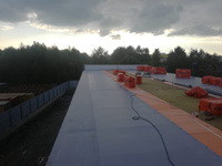 Используемая гидроизоляция: ПВХ мембрана Fatrafol 1.5 мм, механическая система монтажа, утеплитель нижний слой — минвата, верхний — экструдированный пенополистирол