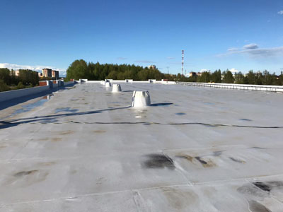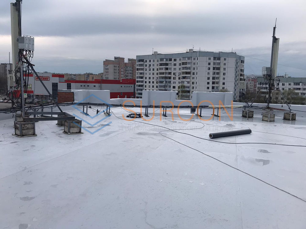 Используемая гидроизоляция: ПВХ мембрана Plastfoil 1.2 мм, механическая система монтажа, геотекстиль