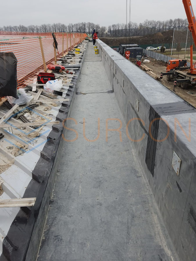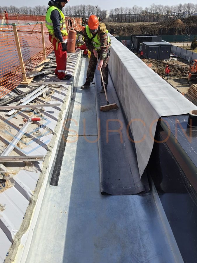 Гидроизоляции лотков кровли по периметру стадиона Краснодар-2