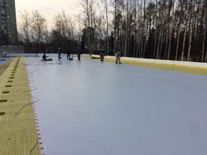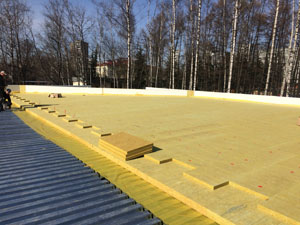Используемая гидроизоляция: ТПО мембрана Plastfoil Eco 1.2 мм, механическая система монтажа, утеплитель Минвата Baswool 140 мм (2 слоя)